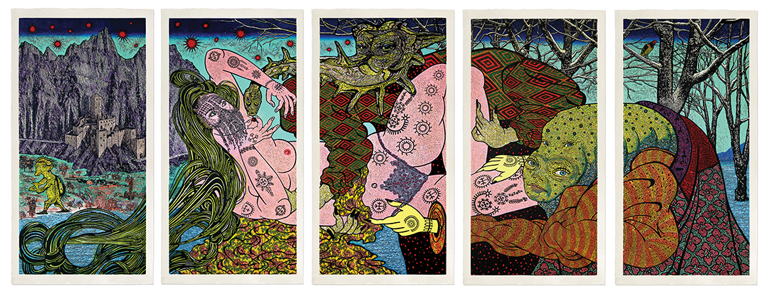 Poskovic’s “Dream” is an allegorical tale that the artist describes as a roman à clef about displacement, exile, memory, and his faith in the orthodoxy and power of visual storytelling. The visible constitutes a poetic language evocative of mystery, affording the thematic iconography in his work to maintain its presence in the apparent opposition between reality and illusion. In this expanded process of visualization, printmaking, and storytelling, a new context emerges.