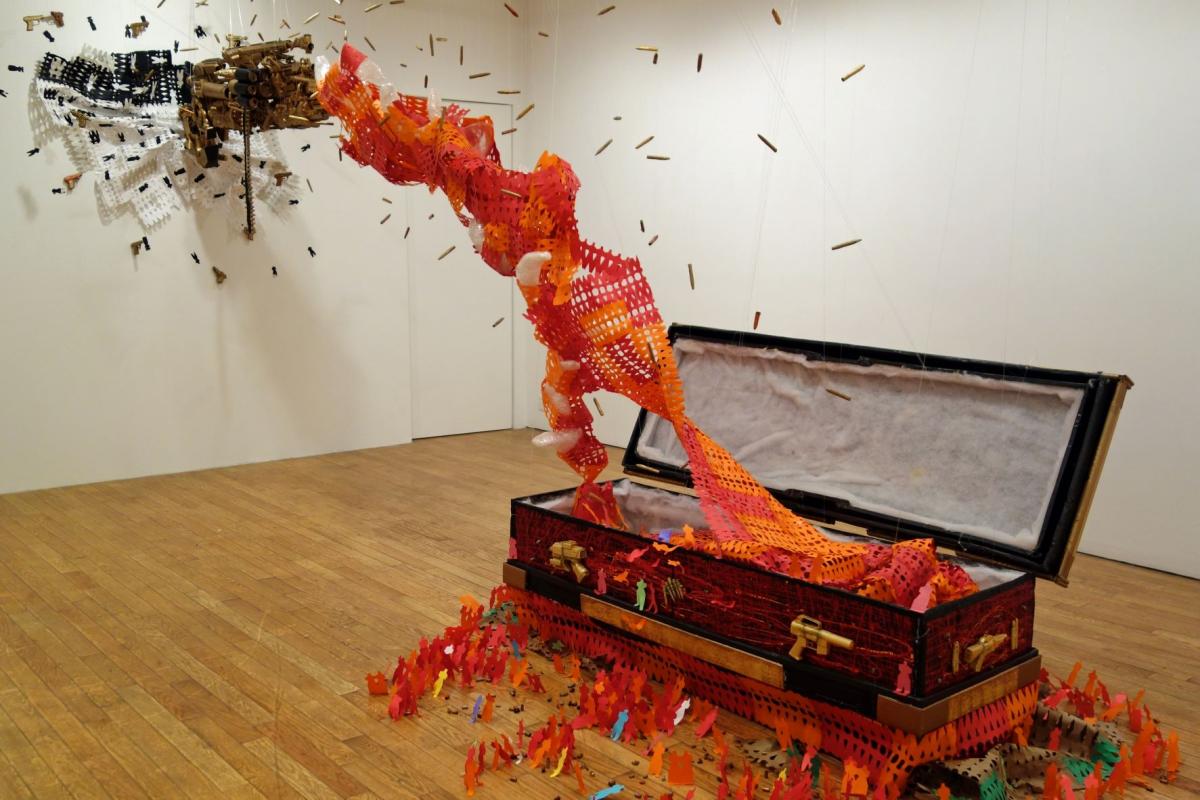 Olaniyi Rasheed Akindiya, also known as “Akirash,” is a multimedia artist who works with cardboard and paper, repurposed objects, video, photography, and performance to explore contemporary issues like gun violence, immigration, race, and religion. He was born in Lagos, Nigeria and has worked in a variety of places ranging from Austin, Texas, to Australia. He recently started a residency at Indiana University Bloomington’s Eskenazi School of Art Architecture + Design. The residency runs through March 3rd. I talked with him about his plans for the residency before he arrived in Bloomington.