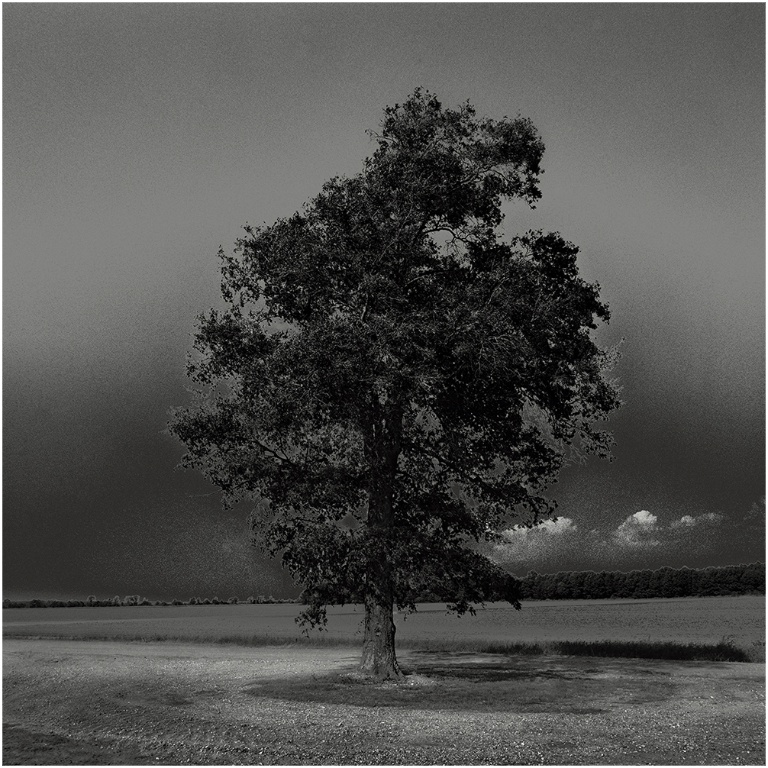SC: Considering your description of Witness Trees, it stands out as quite distinctive among your three bodies of work, primarily because it features only black and white imagery and singular images. Was this choice influenced solely by the materials you had available, or did you deliberate over whether to incorporate additional elements? Essentially, what led you to present the trees as standalone subjects?