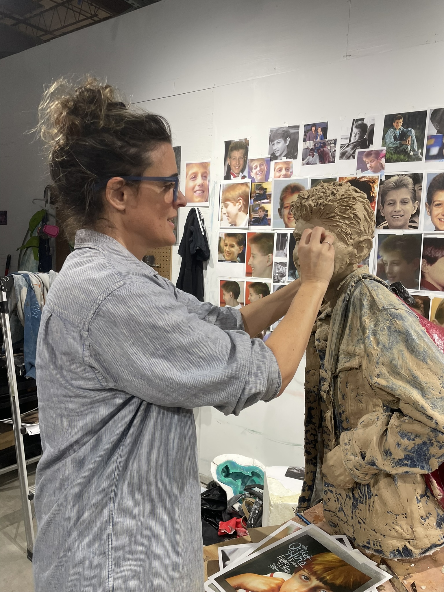 Melanie Pennington at work on the Ryan White sculpture. Yaël Ksander