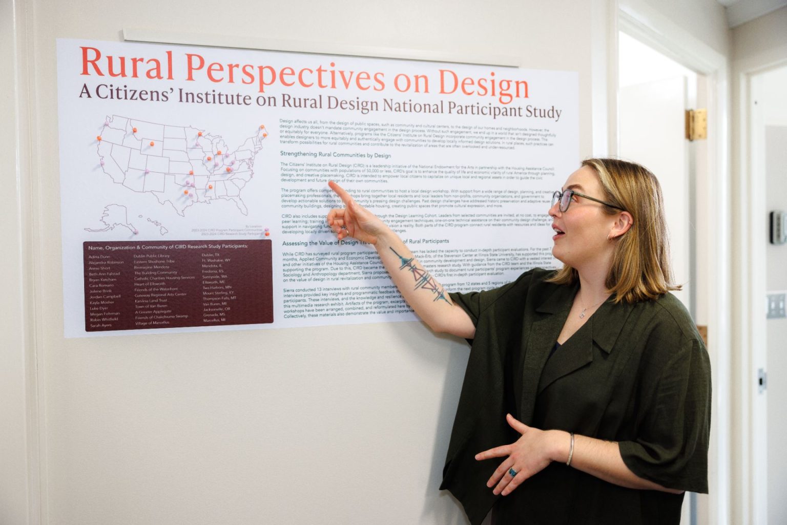 Mack-Erb conducted the study over eight months, completing 13 virtual interviews with rural communities participating in the CIRD program located across 12 states and five regions of the U.S. Organizing and conducting the interviews took about three months, followed by five months of analysis and report development. Mack-Erb also designed and coordinated a public research exhibit titled “Rural Perspectives on Design,” which showcases well over 200 hours worth of applied research.