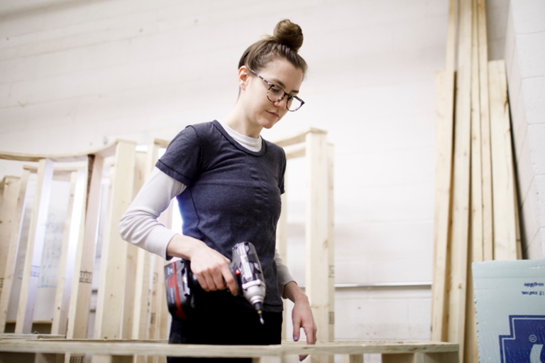 But as she plugged away at her project, Schild was thankful for the new experience to work in a way she isn’t familiar, or always comfortable, with. “I’m not super savvy in the woodshed or metal shops, so I’ve learned a lot,” she said. “And Melanie has gone above and beyond for this class, helping us get what we need and being accepting and encouraging of us while also pushing us when needed.”