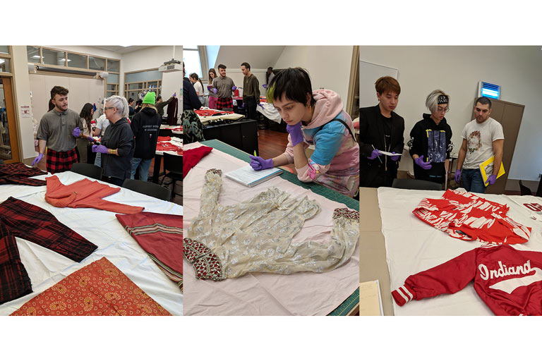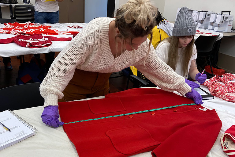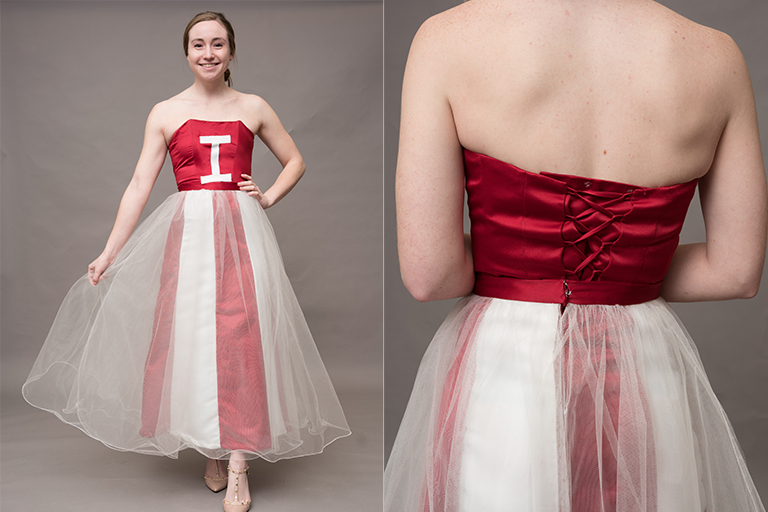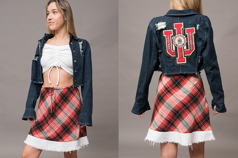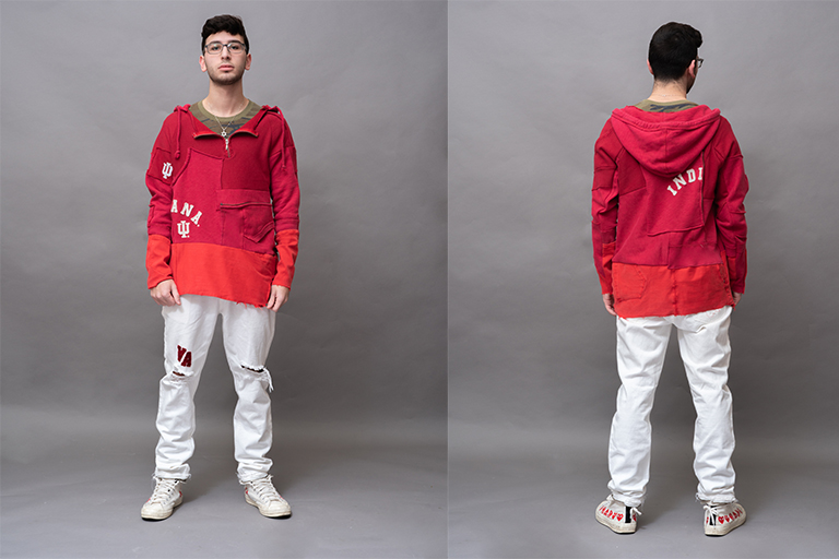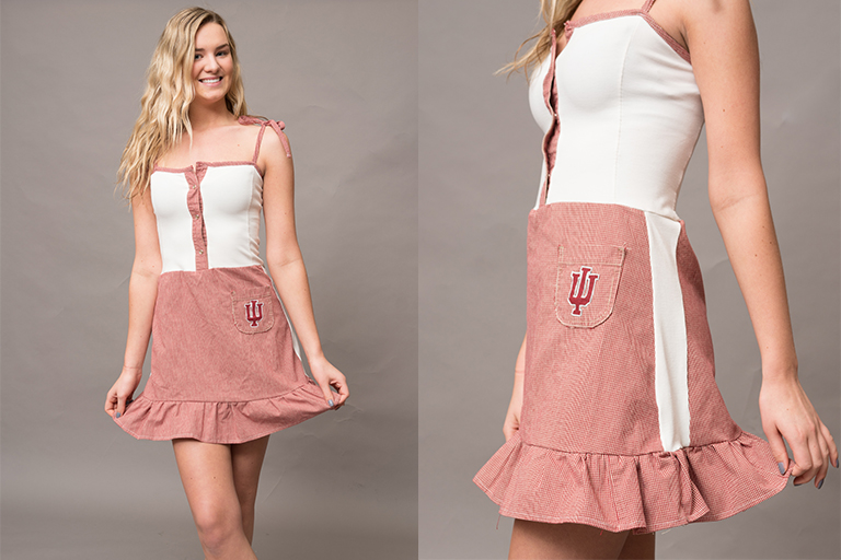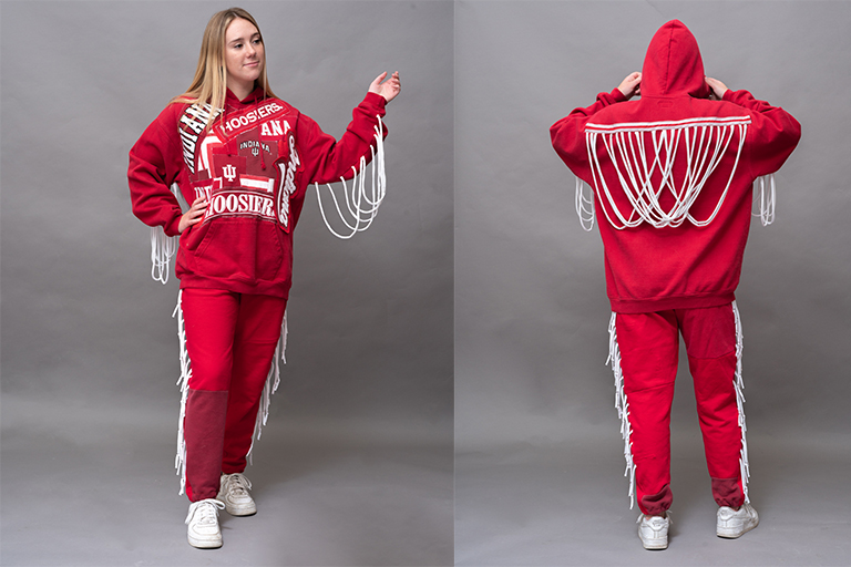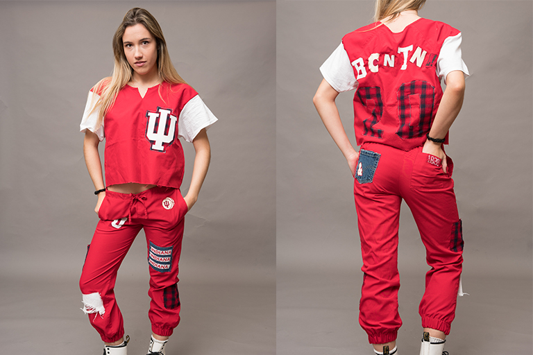 In celebration of Indiana University’s Bicentennial, fashion design students in the Eskenazi School of Art, Architecture + Design researched, designed, and created sustainable Hoosier-themed spirit wear inspired by cream and crimson fashion and historic IU-themed apparel from the Sage Collection and the IU Libraries University Archives. This interaction between campus history, special collections, and contemporary resale clothing served as a catalyst for these re-fashioned sustainable designs. This exhibit, Sustainable Spirit: A Celebration of Campus Culture, History and Fashion, juxtaposes inspirational artifacts from campus collections with each student’s unique perspective of what it means to be a Hoosier.