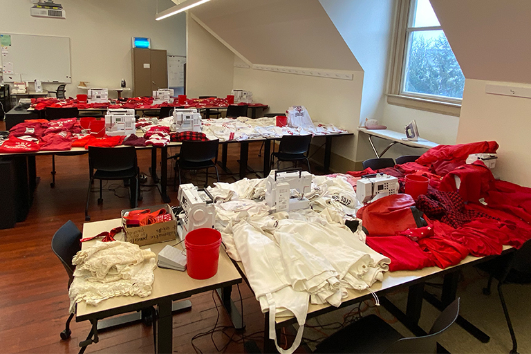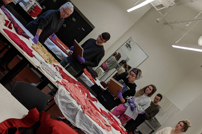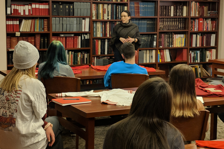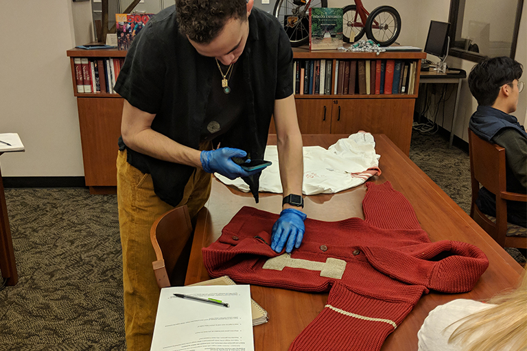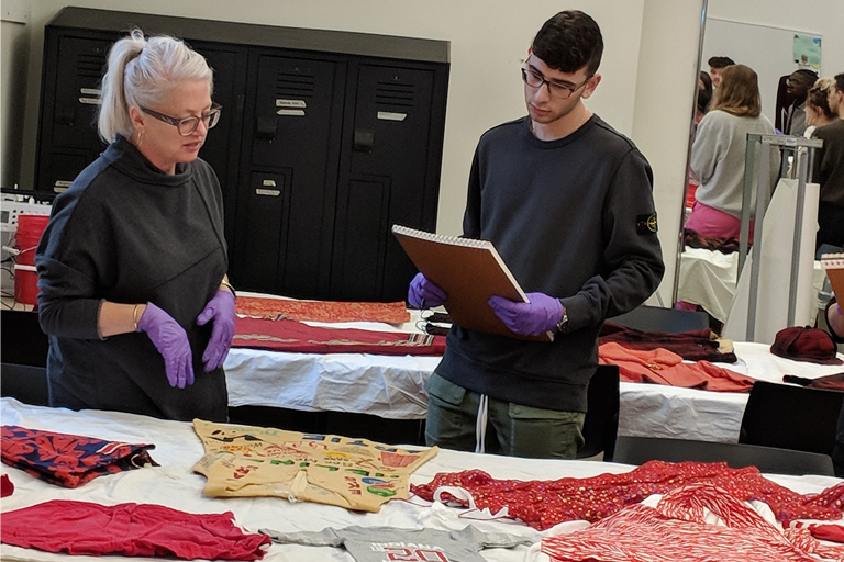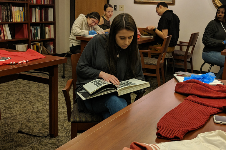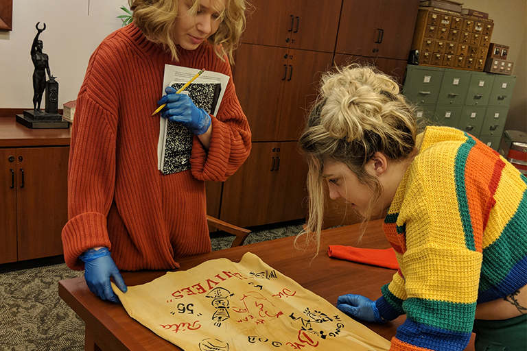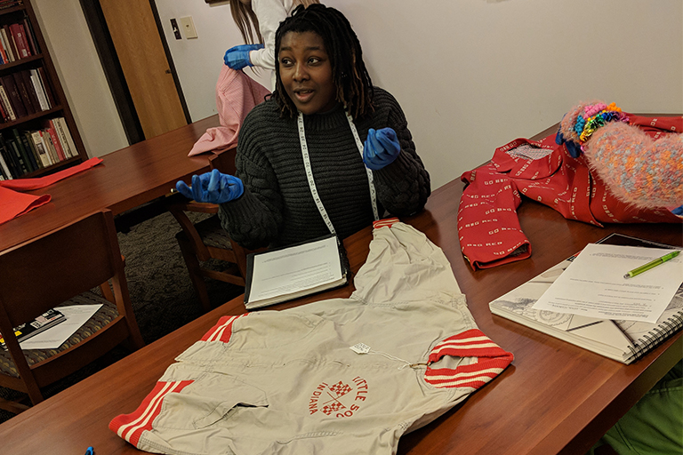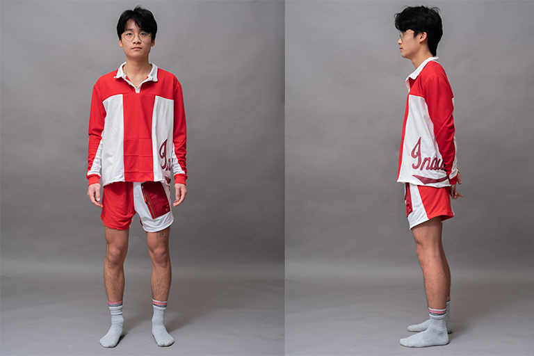 In celebration of Indiana University’s Bicentennial, fashion design students in the Eskenazi School of Art, Architecture + Design researched, designed, and created sustainable Hoosier-themed spirit wear inspired by cream and crimson fashion and historic IU-themed apparel from the Sage Collection and the IU Libraries University Archives. This interaction between campus history, special collections, and contemporary resale clothing served as a catalyst for these re-fashioned sustainable designs. This exhibit, Sustainable Spirit: A Celebration of Campus Culture, History and Fashion, juxtaposes inspirational artifacts from campus collections with each student’s unique perspective of what it means to be a Hoosier.